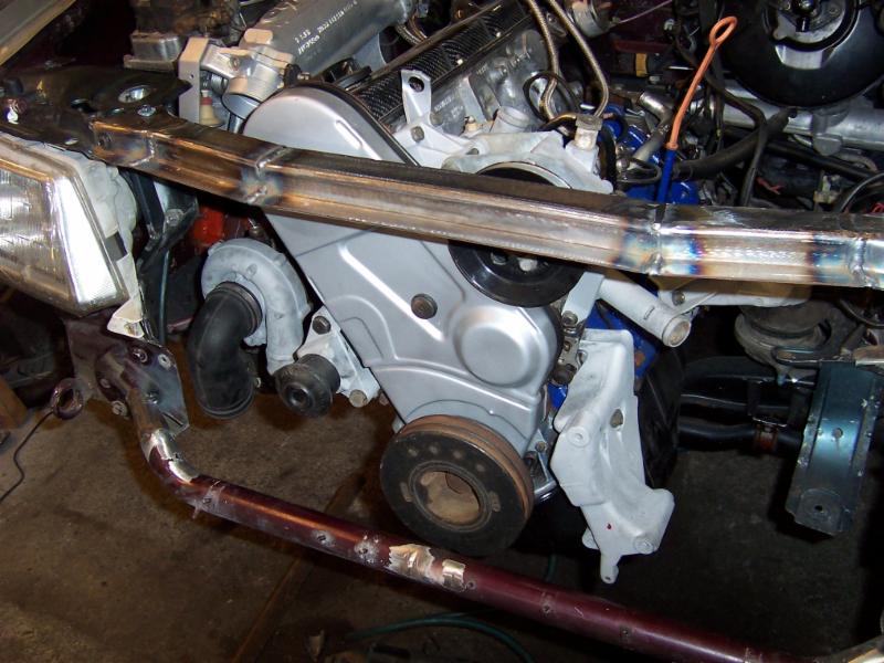 Sowie der Motor komplettiert ist wird er in den B4 Motorraum eingebaut, um die notwendigen Anpassungsarbeiten an Hosenrohr und rechter Spurstange vornehmen zu können.