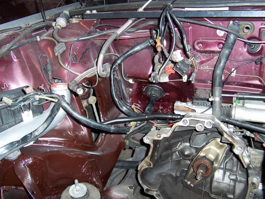 In der mitte kann man die Kabelführung in den Innenraum sehen ,welche vorher nicht vorhanden war da beim V6 die Kabel auf der Fahrerseite reingehen.