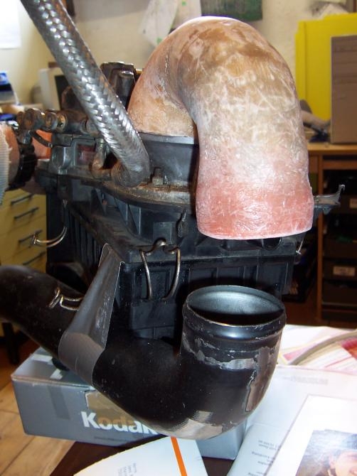 So passt das ganze doch noch in den kleinen Motorraum ...der GFK Körper wird jetzt noch geschliffen und lackiert ( oder vielleicht doch mit Kohlefaser bezogen ;-)