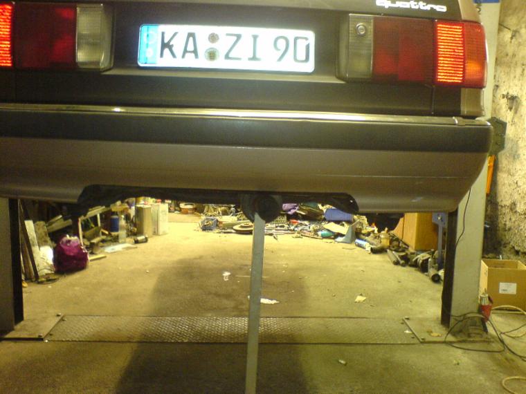 ...und da Jens auf dem Speicher noch einen Audi 200 5T Mittelschalldämpfer gefunden hat wurde dieser gleich zum Endschalldämpfer umfunktioniert :-)))